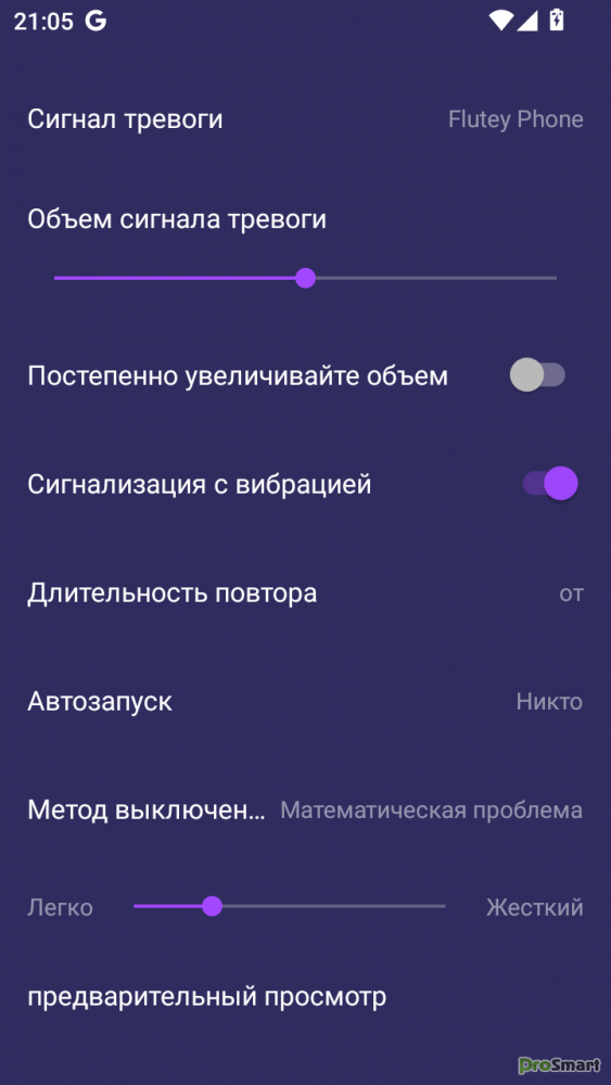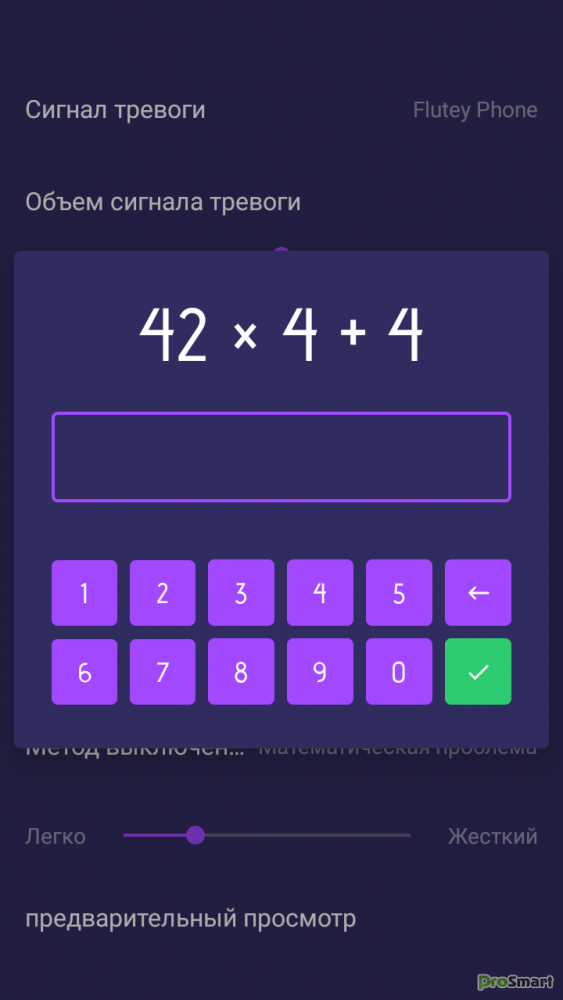 • Пройти математический тест: вам нужно выполнить математический тест, если ваш ответ правильный, будильник выключится. Есть 5 уровней математики на выбор от простого до сложного.