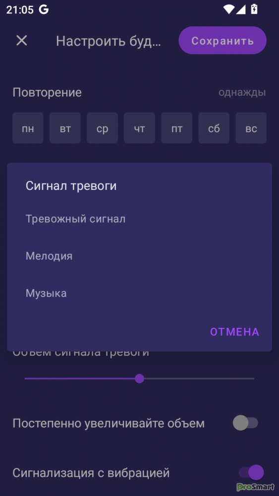 • Выберите звуки для будильника из списка мелодий или понравившуюся песню.