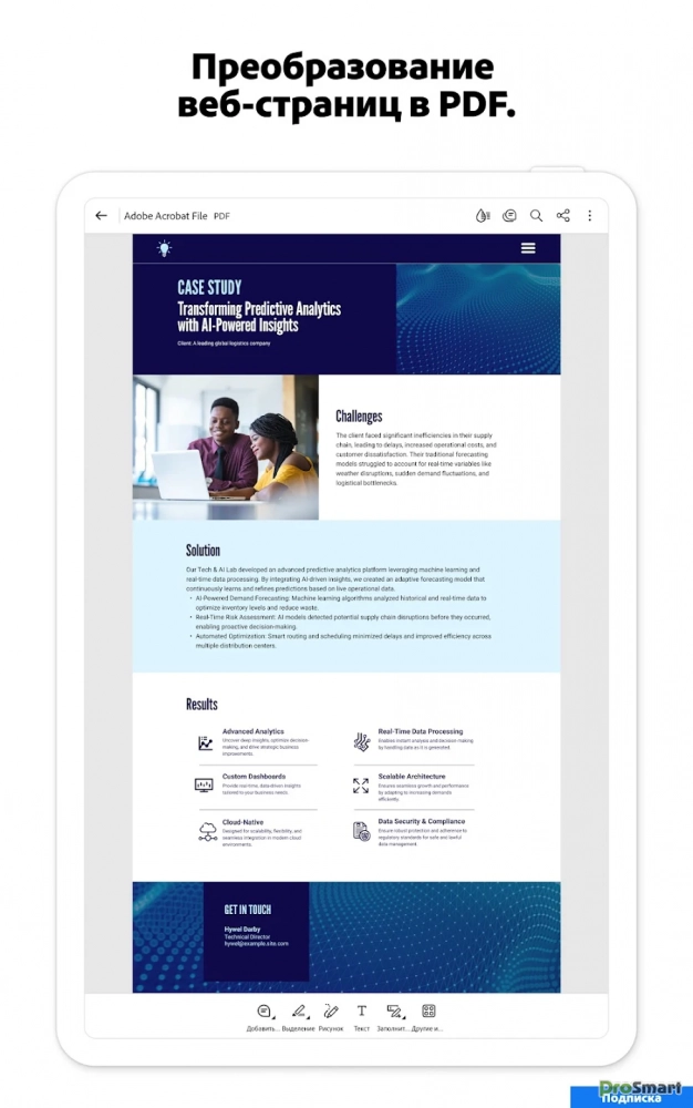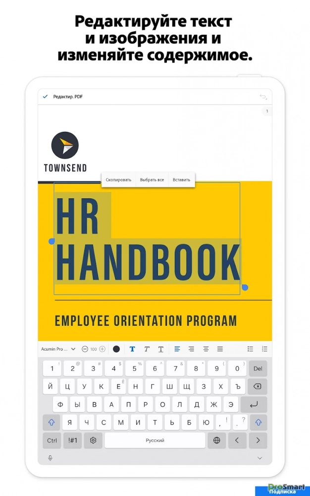 Подпишитесь на Adobe Acrobat, если вам нужен редактор PDF для редактирования текста и изображений, конвертер PDF для экспорта в PDF и из него или более продвинутые функции для создания PDF, объединения PDF-документов, организации PDF и т.д.