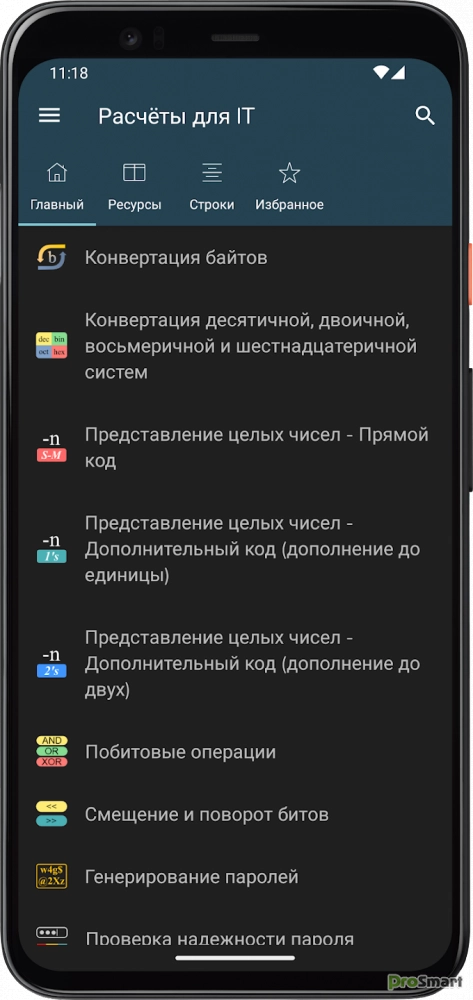 Конвертация байтов - Конвертация десятичной, двоичной, восьмеричной и шестнадцатеричной систем - Представление целых чисел: Прямой код, дополнение до единицы, дополнение до двух - Генерирование паролей - Генерирование случайных числел - Кодирование / декодирование Base 64 - Кодирование / декодирование URL - Генерирование хеша MD5, SHA, CRC-32 - Конвертация UNIX-времени - Расчет PoE - Расчет подсети - Расчет RAID - Время передачи данных - Пробуждение по локальной сети (Wake On LAN) - RGB/HEX преобразование - Время передачи данных - Побитовые операции- Смещение и поворот битов