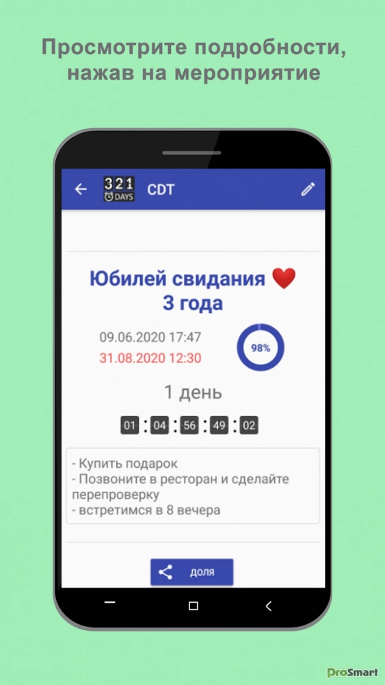 Используя CDT, вы никогда не забудете самые важные даты. Создайте счетчик для записи всех важных событий, и CDT отправит вам напоминание о приближении даты.