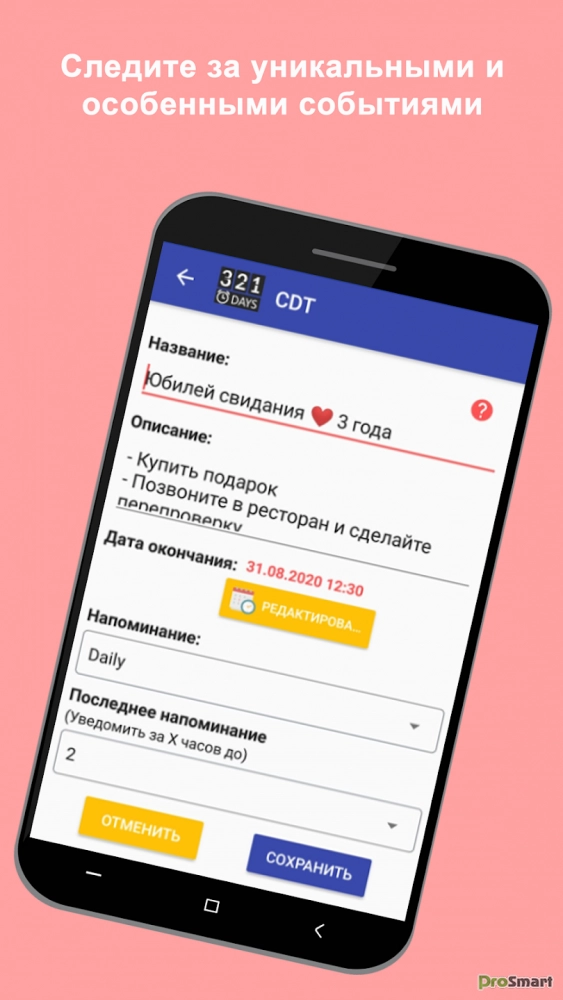 ★ Вы можете настроить некоторые уведомления, чтобы получать напоминания ежедневно, еженедельно или ежемесячно. И когда событие заканчивается, вы также получите уведомление.