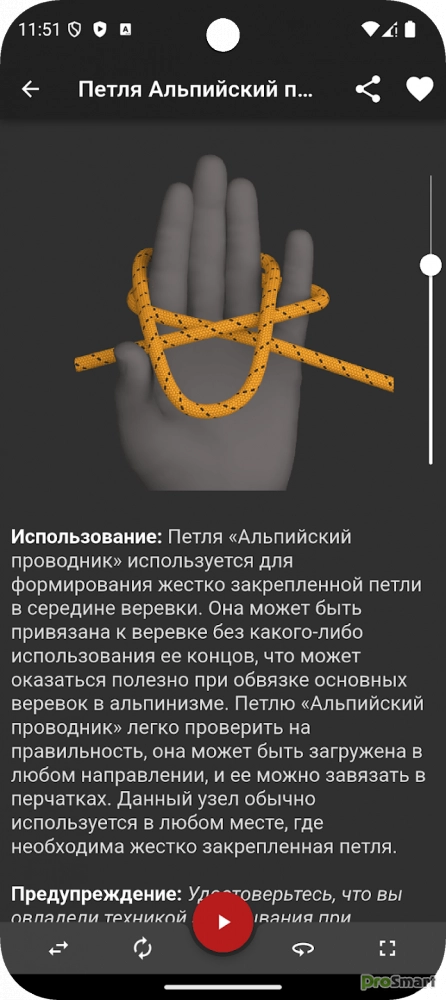- Смотрите, как завязываются узлы; приостанавливайте анимацию или меняйте ее скорость в любой момент времени.