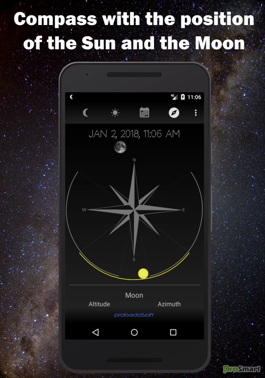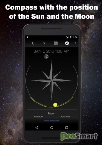 • любительская астрономия – просмотр компаса с визуализацией азимутов Луны и Солнца позволит лучше понять связанные с ними явления (в школе, вузе или при самостоятельном наблюдении). Компас показывает цветными дугами видимость Солнца или Луны на небе в данный день в выбранном месте.