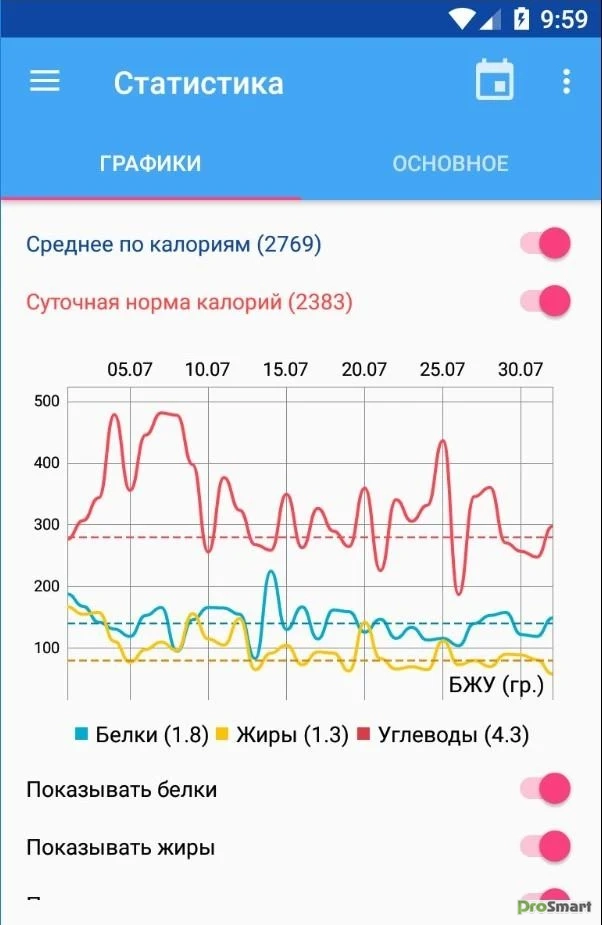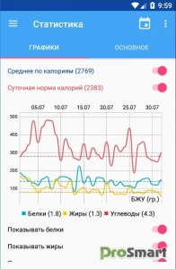 • Гибкая настройки лимита калорий, белков, жиров и углеводов