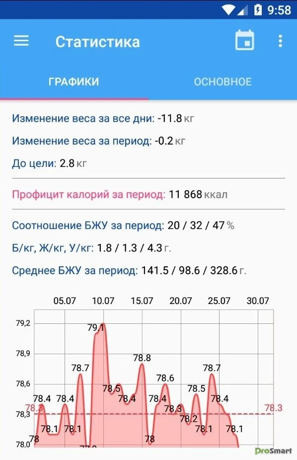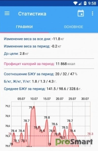 • Расчет индекса массы тела, процента жира, нормы калорий и БЖУ
