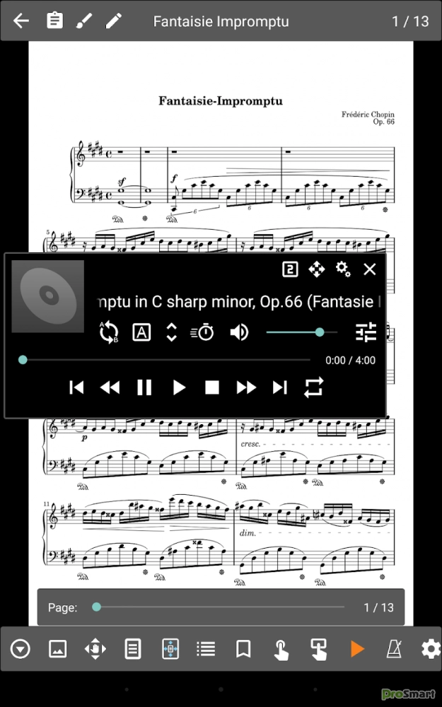 - Пользовательский аудиоплеер для воспроизведения аудиодорожек с вашими партитурами. Аудиоплеер поддерживает цикл A-B и несколько размеров.