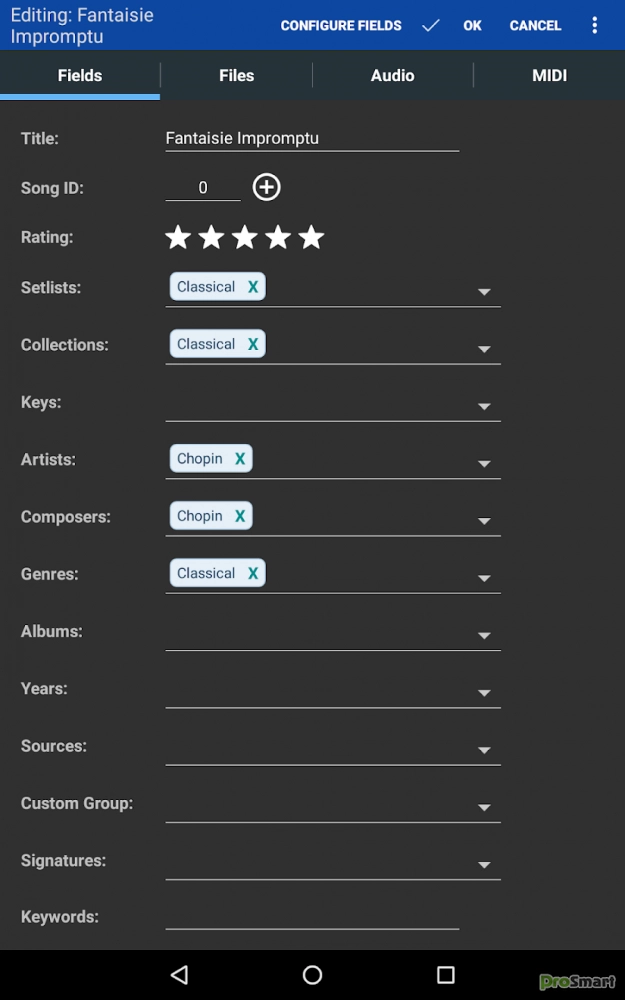 MobileSheetsPro действует как файловый менеджер для ваших нотных файлов (PDF, изображений или файлов текста/аккордов Pro) и ссылается непосредственно на них на устройстве. Он обеспечивает способ организации и быстрого доступа к любому из этих файлов. MobileSheetsPro можно настроить на использование существующих файлов и папок в памяти устройства, что позволяет упорядочивать эти файлы по желанию пользователя без необходимости их копирования или перемещения. Попробуйте MobileSheets сегодня и испытайте свободу: все ваши результаты можно получить одним касанием.
