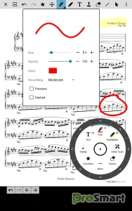 - Аннотации для разметки музыки, включая поддержку рисунков произвольной формы, основных фигур, текста и штампов.