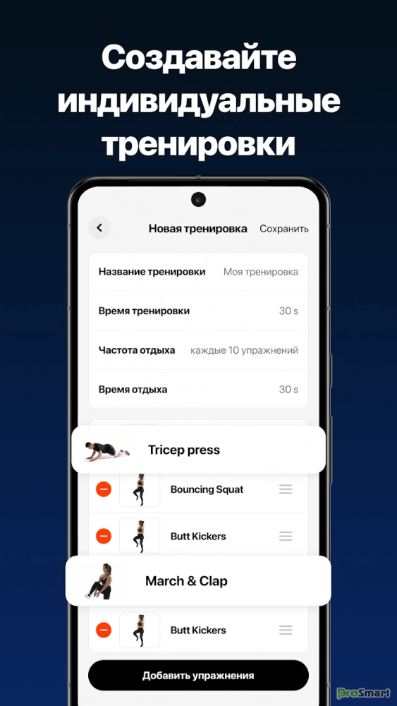 • возможность создания вашей собственной "индивидуальной тренировки" из нашей огромной базы упражнений