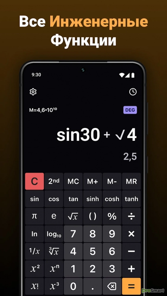 • Научный калькулятор: включает основные функции, такие как тригонометрия, логарифмы и статистические вычисления.