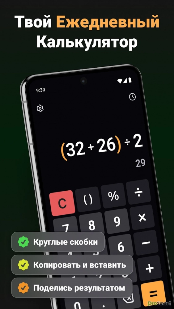 • Базовый калькулятор: сложение, вычитание, умножение, деление.