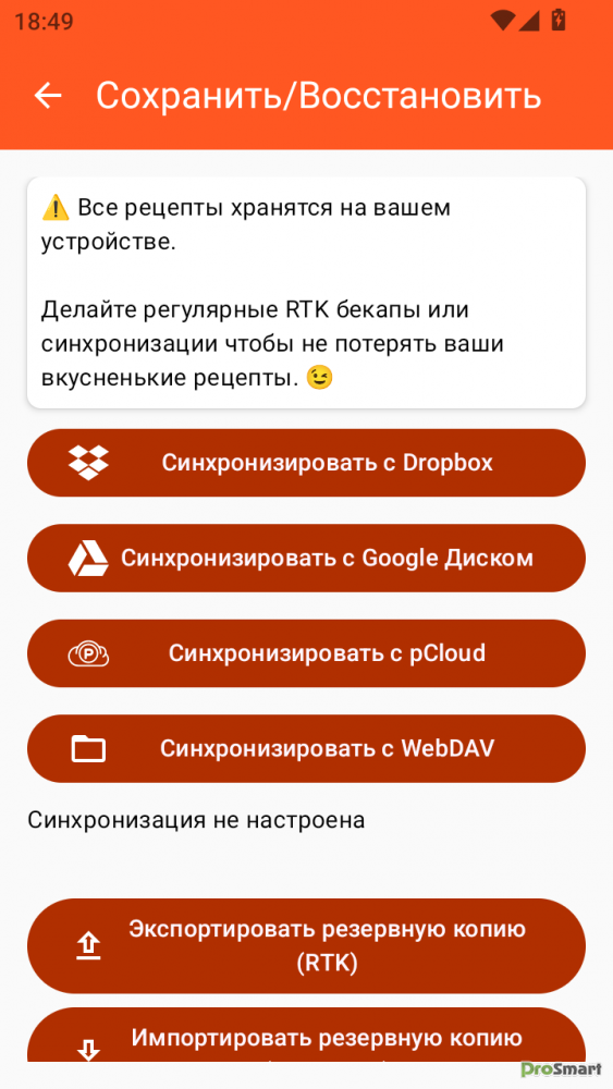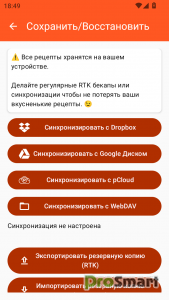 • Резервное копирование и восстановление рецептов.