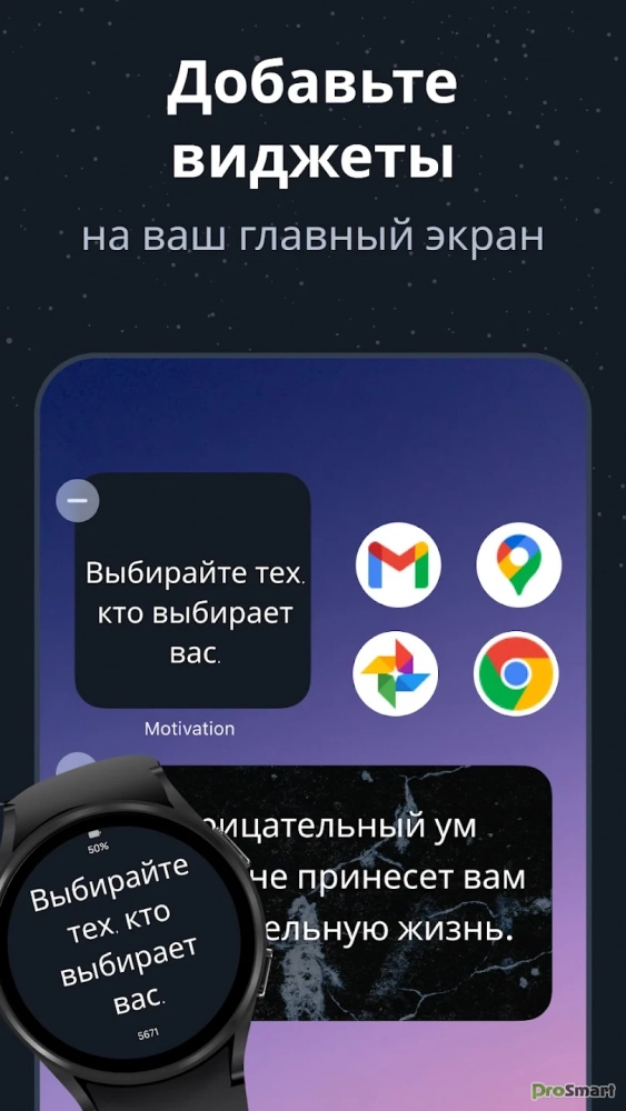 Переживаете трудные времена? Вам нужен дополнительный толчок, чтобы выполнить трудную задачу? Любите делиться вдохновляющими цитатами в социальных сетях? Тогда Motivation идеально вам подойдет. Позитивные напоминания — один из самых простых и мощных инструментов для психического роста. Секрет в том, чтобы каждый день с самого утра держать правильные мысли в голове. Тогда в трудные времена, когда они нужны больше всего, они всплывут сами собой. Просто установите виджет на домашний экран и настройте его из приложения. Можно установить любое количество виджетов. Добавьте заряд позитива в свои ежедневные мысли с помощью виджета Motivation. Установите виджет на главный экран и настройте его с помощью приложения.
