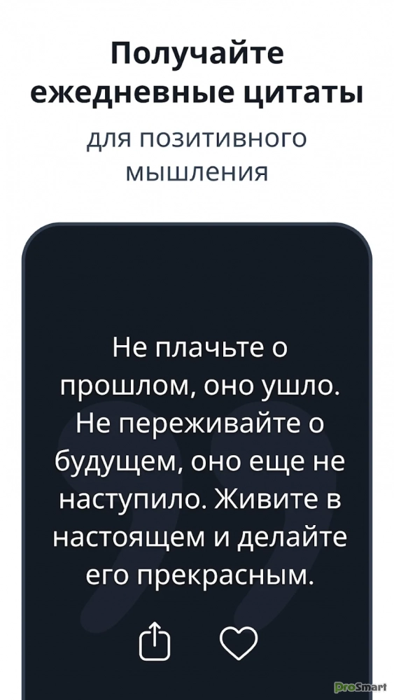 Настройте дизайн цитат и поделитесь вдохновляющим посланием дня с друзьями, опубликуйте его в Instagram или поставьте как заставку на телефон. Приложение включает высказывания на множество разных тем (например самооценка, отношения, борьба со стрессом), а также подборку тщательно разработанных тем, которые часто обновляются.