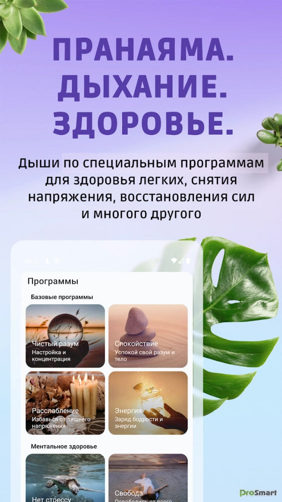⦿ 24 программы: дыхание для успокоения, пранаяма, когерентное дыхание