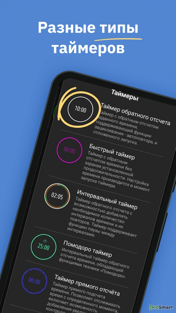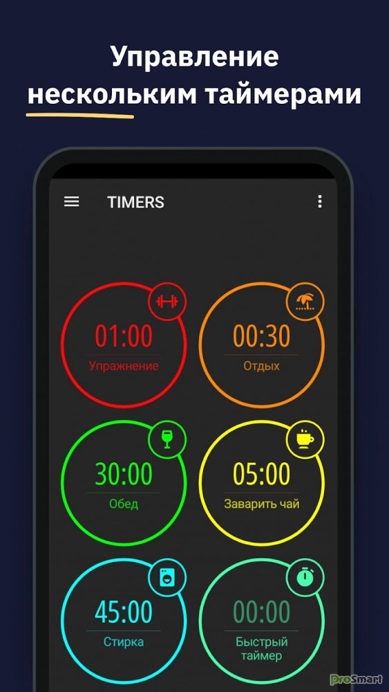 Создавайте несколько таймеров для любых целей. Выбирайте из:
