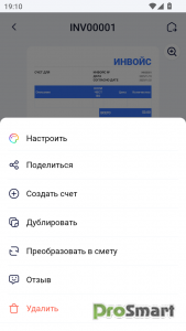 - Отправка смет и счетов другим пользователям по электронной почте после выставления счета