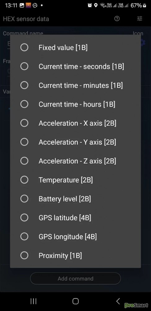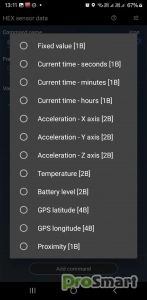 - Редактор для создания команд/сообщений в шестнадцатеричном и текстовом формате или сообщений, содержащих данные датчиков телефона (температуру, GPS-координаты, датчик приближения, акселерометр и т. д.)