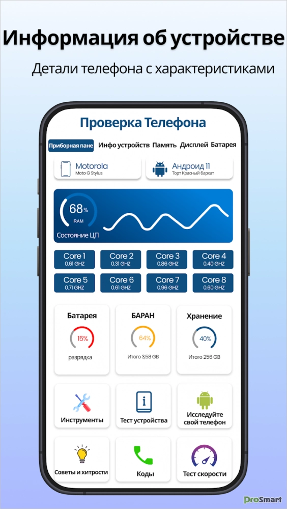 «УстройствоЧек: Tелефона ЦПУ, Система» — ваш главный ресурс. Загрузите приложение MDM с информацией об устройстве прямо сейчас и отправляйтесь в путешествие открытий. Будьте готовы взламывать телефонные коды и получать доступ к скрытым настройкам.