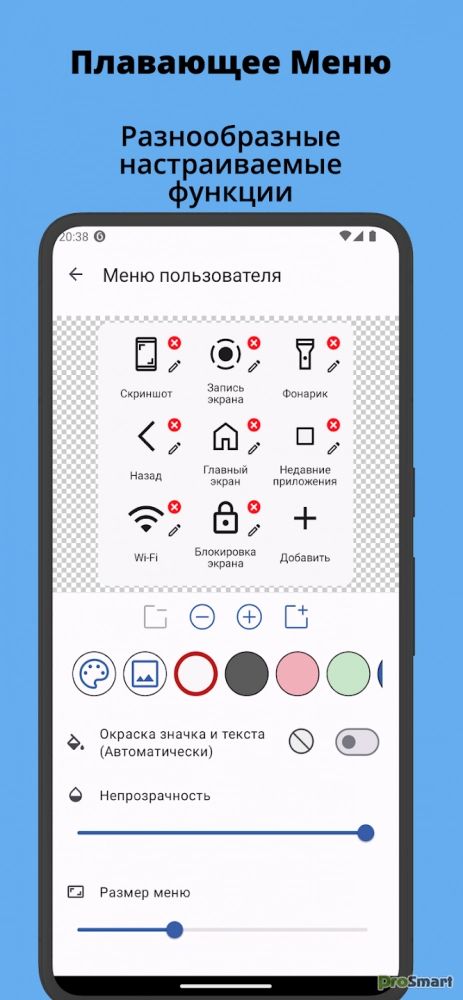 ● Плавающие ярлыки на экране – улучшенный аналог iPhone Assistive Touch с удобным размещением и постоянным отображением на любом участке экрана.