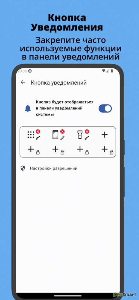 ● Фонарик, QR-сканер, запись экрана, скриншоты, блокировка экрана, таймер подсветки, запуск приложений и сайтов.
