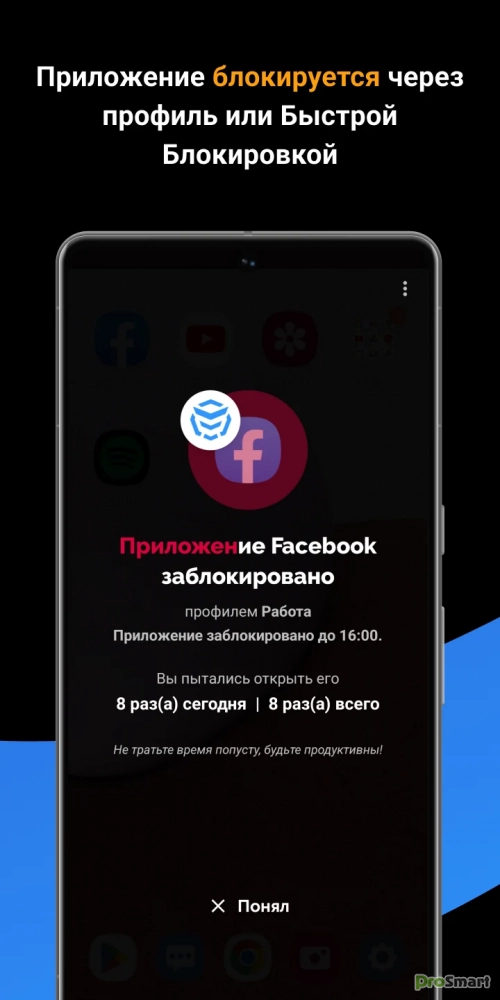 ✔ Используя блокировщик приложений, вы можете временно заблокировать доступ любого приложения.