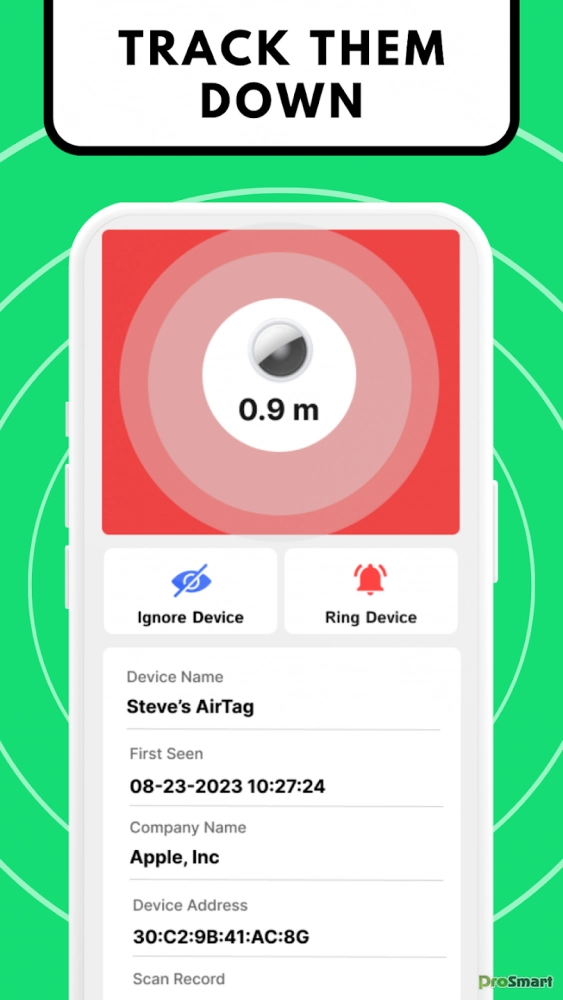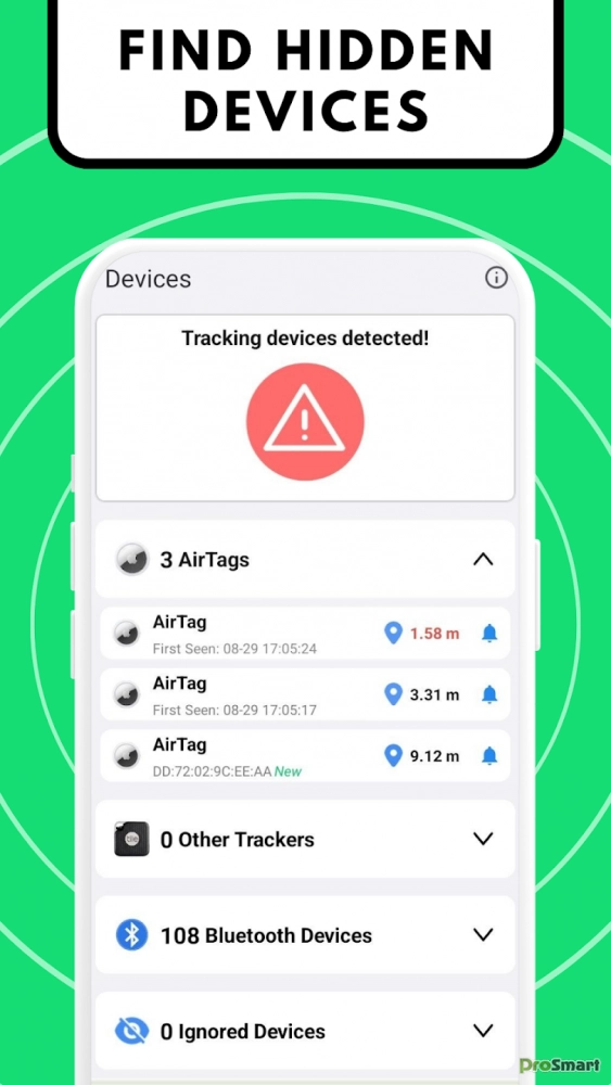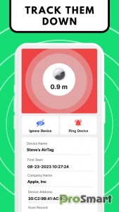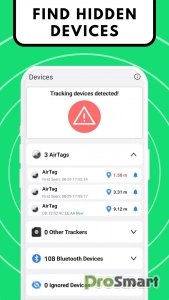1. Запустите сканирование: запустите приложение, чтобы просмотреть все устройства отслеживания и устройства Bluetooth поблизости 📡. 2. Будьте в курсе 🚨: получайте немедленное уведомление, если будут обнаружены какие-либо подозрительные трекеры. 3. Точное определение местоположения 📍: нажимайте на идентифицированные трекеры, чтобы измерить расстояние до них. Для поддерживаемых устройств, таких как AirTags и AirPods, активируйте звуковой сигнал, чтобы определить их точное местоположение 🔊. 4. Нейтрализуйте угрозу 🚫. После обнаружения отключите все нежелательные трекеры и вздохните спокойно, зная, что все под контролем.