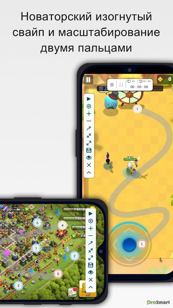 Данный автоматический кликер поддерживает множество различных действий, начиная от самых простых, заканчивая самыми сложными, к ним относятся такие жесты как щелчок, изогнутый свайп и масштабирование двумя пальцами.