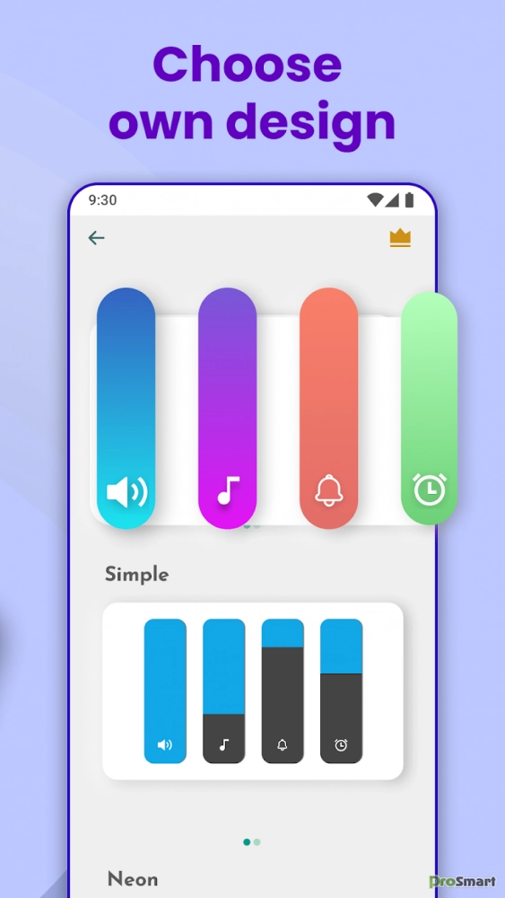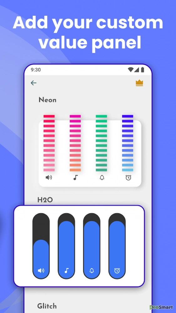 Настрой свои собственные слайдеры громкости или используй скины панели управления громкостью по умолчанию, доступные в приложении. Быстрая и простая настройка!
