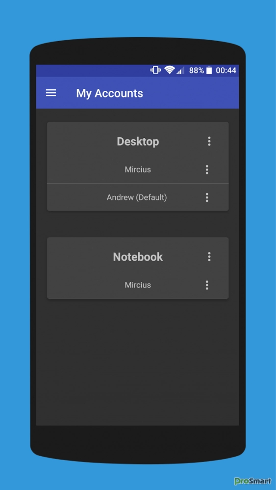 Для пользователей PRO: чтобы выбрать одну из добавленных учетных записей по умолчанию, нажмите кнопку меню из трех точек и выберите «Установить по умолчанию».