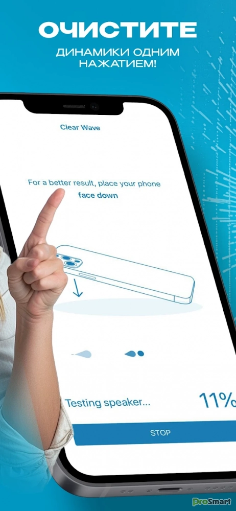 📱 Это приложение очень простое и удобное для использования каждым. Clear Wave использует хитрый трюк, чтобы удалять воду и грязь из динамиков, воспроизводя специальные звуки.
