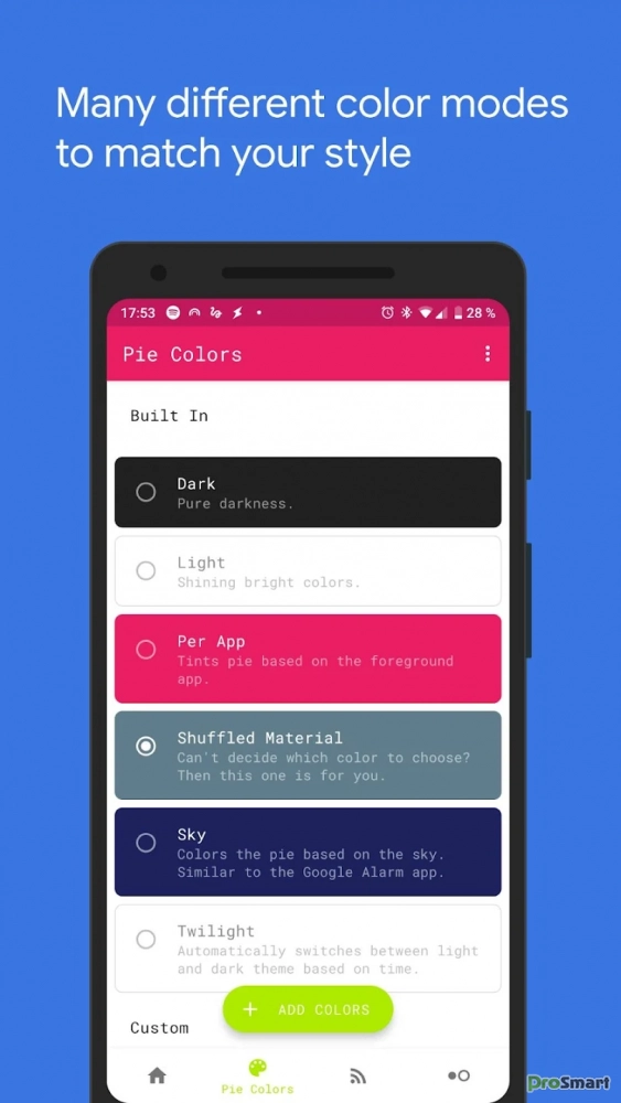 • Для каждого приложения, которое окрашивает «Круговую диаграмму» в цвета основного приложения.