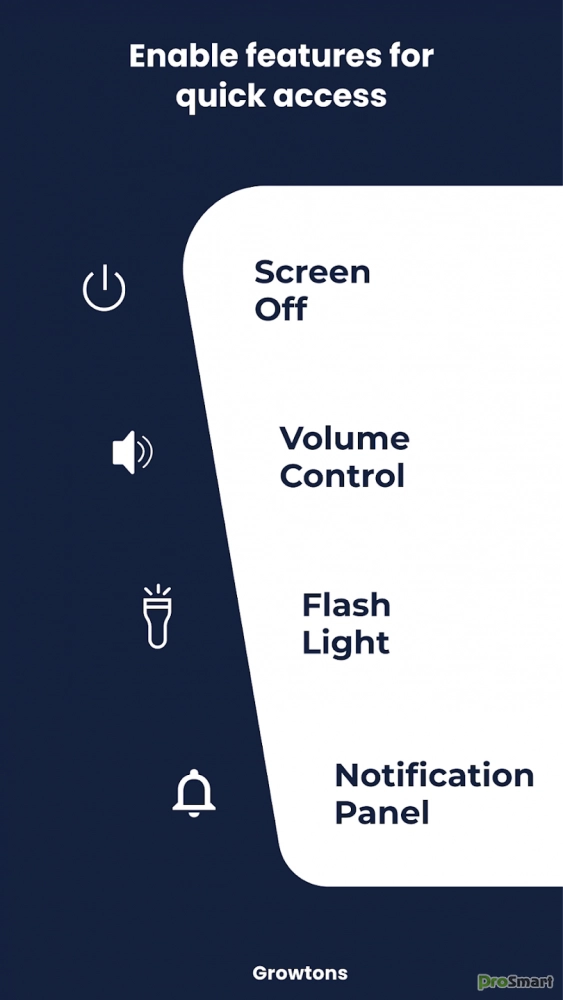 ПРИМЕЧАНИЕ. Это приложение использует службу специальных возможностей с единственной целью предоставления панели навигации, кнопки питания, кнопки громкости и функций вспышки.