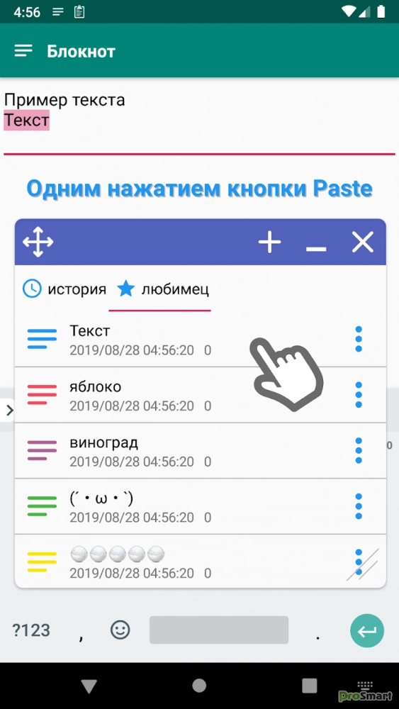 Менеджер буфера обмена. Совместим с Android 10. Сохраняет историю скопированного текста. Вставляйте текст одним касанием.Разработчик: Jetpof Apps