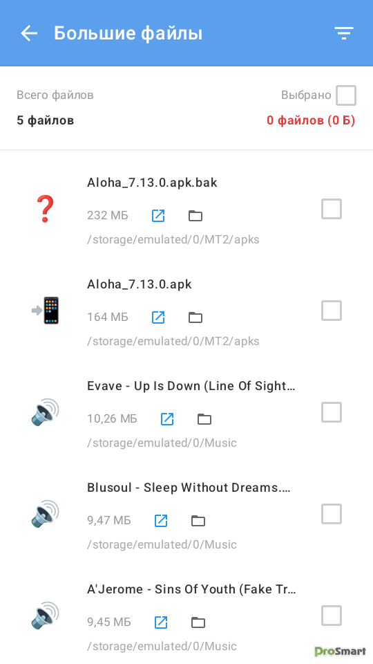 Находите и удаляйте ненужные файлы, хранящиеся на вашем устройстве.