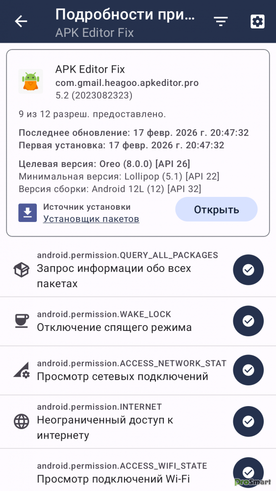 Сюда также входят разрешения на доступ в Интернет и статус SharedUserID!