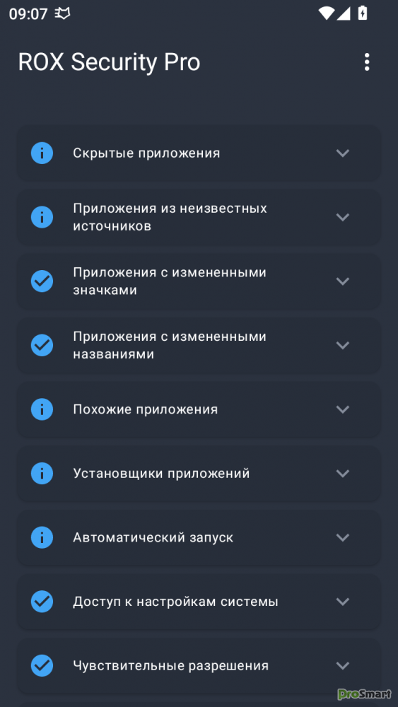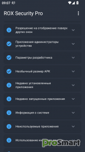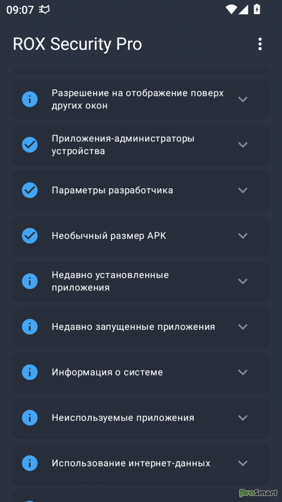 ✓ Приложения из неизвестных источников – Находит приложения, установленные не из Google Play Store.