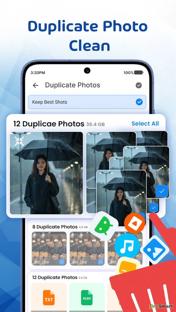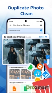 Очистка Телефона имеет интеллектуальную функцию очистки AI, которая работает как очиститель памяти. Это приложение с передовыми алгоритмами AI может обнаруживать и сканировать ненужные данные. Эти данные включают дубликаты фотографий и файлов, старые снимки экрана, большие файлы и т. д. AI cleaner сканирует и выводит список данных перед пользователями, которые можно очистить. Пользователи могут легко удалить дубликаты фотографий и файлов и другие ненужные данные.