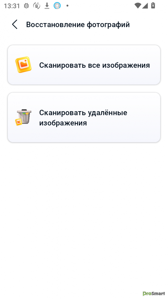 - Восстановление фотографий одним нажатием и сохранение их в галерее.