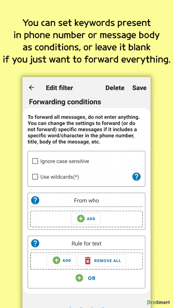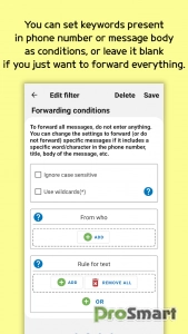 3. Вы можете установить ключевые слова, присутствующие в номере телефона или теле сообщения, в качестве условий или оставить это поле пустым, если вы просто хотите пересылать все.