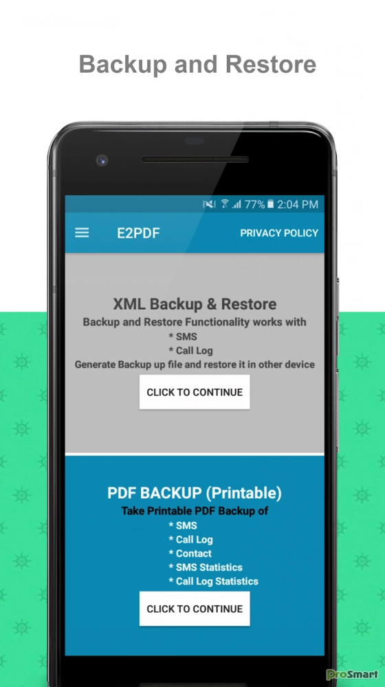 Теперь вы можете получить резервную копию в формате xml или PDF почти всего (контакты, журнал определенных контактов, журнал вызовов, резервное копирование SMS, статистика журнала вызовов, статистика SMS, truecaller), и вы можете мгновенно сохранить эту резервную копию в электронной почте, на Google Drive / DropBox или сохранить в любом облачном местоположении / где угодно. Функция резервного копирования и восстановления доступна для SMS и журнала вызовов в дополнение к резервному копированию в формате PDF, которое доступно для SMS, журнала вызовов, контактов и статистики.
