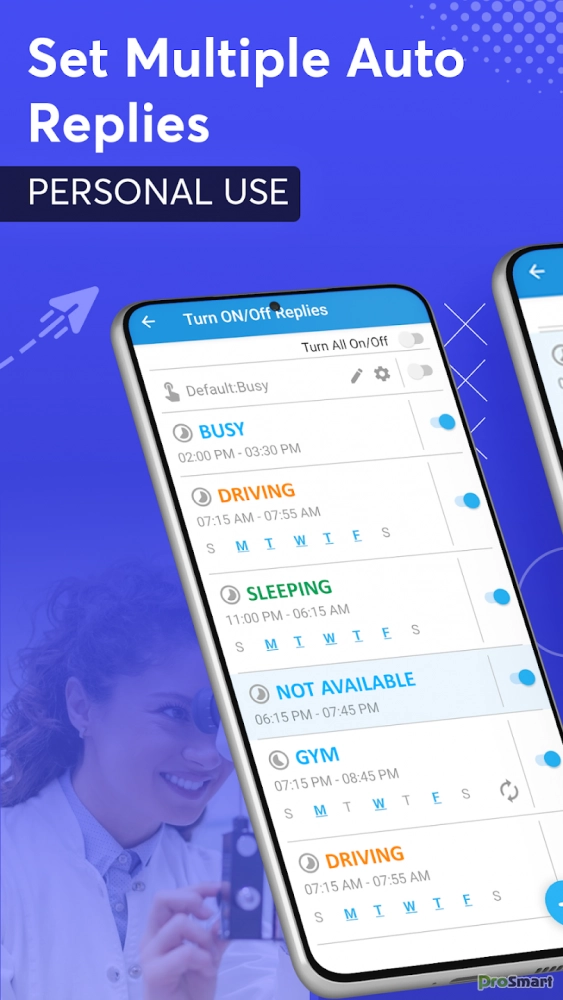 ✔ Настройка нескольких профилей для автоматического ответа - (один для вождения, один для сна, один для класса и т.д.)