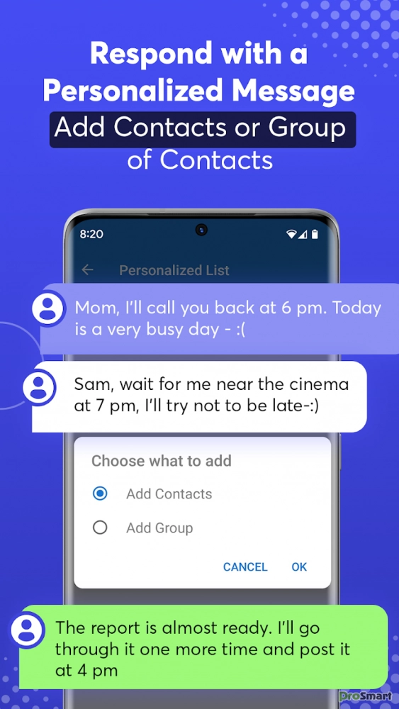 ✔ Персонализированный список - люди, которым вы хотите посылать автоответ с персонифицированным сообщением