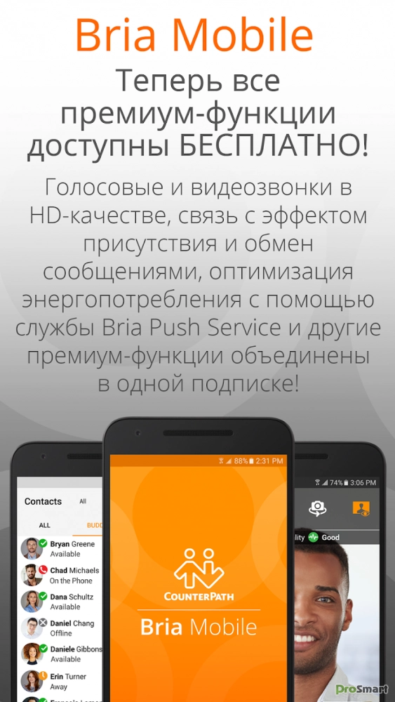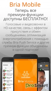 ・ За плечами нашей компании — более 10 лет работы с различными инновационными технологиями, результатом которой стало создание приложения Bria Mobile, теперь доступного по подписке на месяц или на год. Подписка включает регулярные обновления, push-службу Bria для увеличения срока работы от батареи, видеовызовы высокого разрешения, G.729 или другие кодеки широкополосной передачи данных (ранее доступные только через платные дополнения).