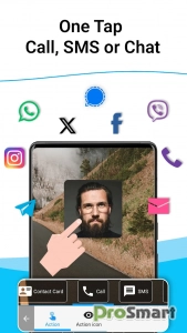 - Быстрый доступ к функции вызова, отправке СМС, просмотру профиля и чату в социальной сети;