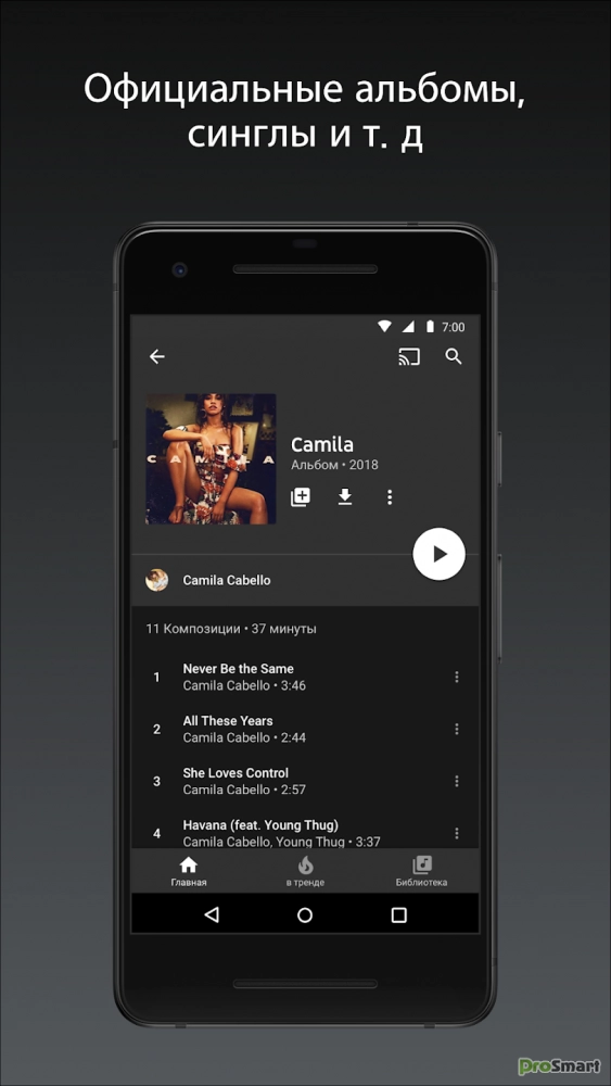 ● Удобно организованная фонотека, в которой собраны ваши любимые треки, плейлисты, альбомы и исполнители.