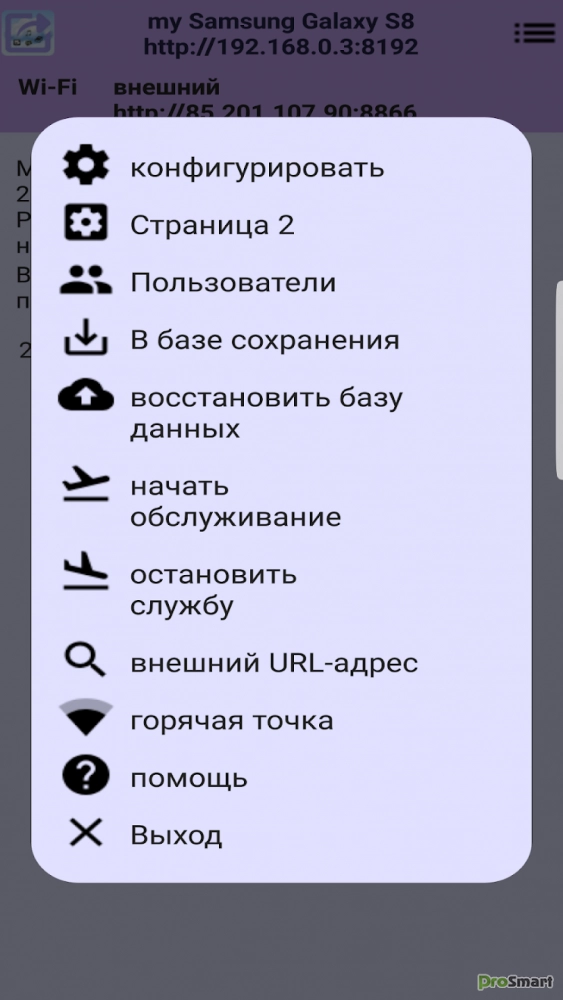 Сервер HTTP можно использовать через Интернет из вашей Wi-Fi сети только для настройки внешнего номера порта в конфигурации. Если не нулевое значение задано, то приложение пытается динамически настроить интернет-шлюз с помощью UPnP, в противном случае необходимо настроить его вручную.