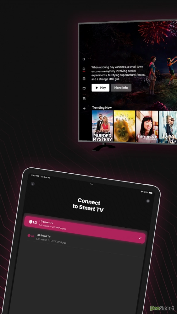 Наш интеллектуальный пульт дистанционного управления идеально подходит для тех, кто хочет управлять телевизором LG, благодаря своему уникальному дизайну и расширенным функциям. Это удаленное приложение позволяет легко получить доступ к вашим любимым шоу и фильмам, где бы вы ни находились в комнате.