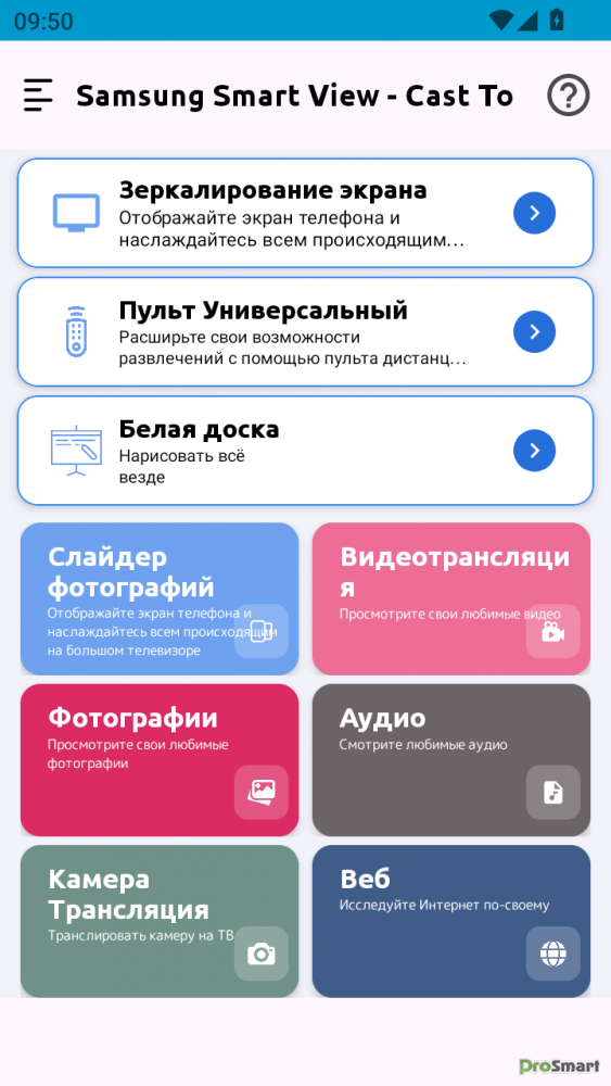 Это приложение для совместного использования экрана позволяет транслировать маленькие мобильные экраны на большие экраны любого Smart TV. Теперь вы можете спасти свои слабые глаза от маленького экрана, поделившись тем же мобильным контентом на большом экране телевидения. Вы можете легко отображать все типы медиафайлов, включая фотографии, видео, мобильные игры и музыку на большом экране.